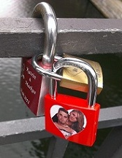Als wir auf der Brücke standen, erkannte Sina die vielen Liebesschlösser.....